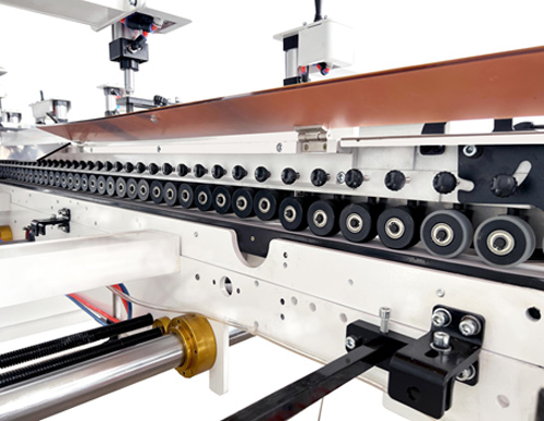 | Bloqueo inferior Estructura de seguimiento de 3 tablas, el encolador superior puede hacer Toda la parte de bloqueo inferior está instalada en La velocidad de plegado inferior es de 50 a 200 piezas por minuto, |